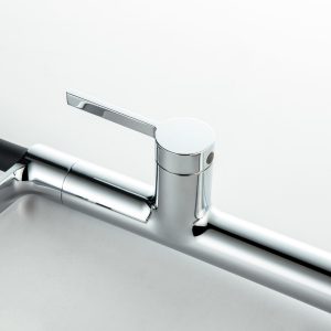 - Tay vòi ngang tối ưu không gian bàn bếp.